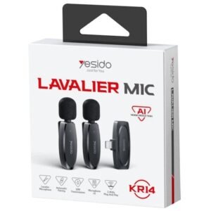 This is a Yesido KR13 Lavalier Microphone set, featuring AI noise reduction and 2.4GHz wireless transmission. The package includes two